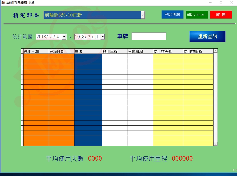 1.部品每月使用量統計:讓老闆的您明確快速了解相關產品使用數量掌握店內應庫存的數量。